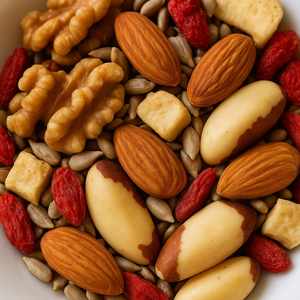 Ingredient : Walnuts | Almonds | Sunflower seeds | Brazil Nuts | Dried Goji berries | Dried Apples
